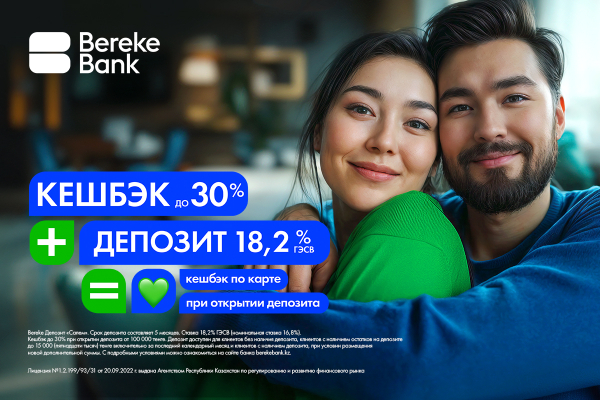 Все мы мечтаем о том, чтобы найти идеального партнера. В идеальной паре не просто дополняют друг друга, а делают жизнь ярче и лучше. Bereke Bank предлагает вам уникальное сочетание: депозит с высокой процентной ставкой и повышенный кешбэк, который станет вашим верным спутником.