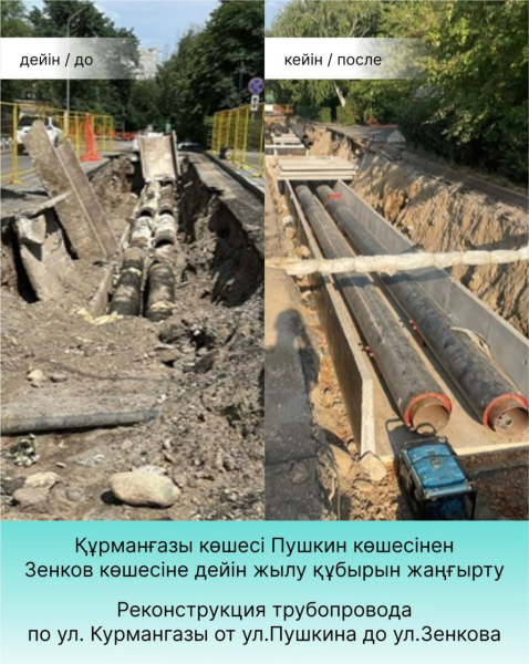 В этом году по поручению акима Алматы Ерболата Досаева реконструировано 20 км теплосетей, работы велись в 6 районах города в межотопительный период. Благоустройство участков после реконструкции проводится поэтапно в зависимости от погодных условий.