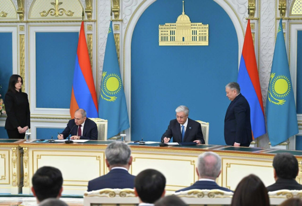 Никол Пашинян и Касым-Жомарт Токаев приняли Совместное заявление в Акорде© Photo : АкордаТакже главы министерств Армении и Казахстана подписали ряд документов. А именно:Соглашение между Правительством Республики Казахстан и Правительством Республики Армения о передаче, использовании, защите и сохранности секретных сведений; Соглашение между Правительством Республики Казахстан и Правительством Республики Армения о взаимном предоставлении земельных участков для строительства зданий дипломатических представительств Республики Казахстан в Республике Армения и Республики Армения в Республике Казахстан; Дорожная карта по торгово-экономическому сотрудничеству между Правительством Республики Казахстан и Правительством Республики Армения на 2026-2030 годы; Меморандум о сотрудничестве между Министерством промышленности и строительства Республики Казахстан и Министерством территориального управления и инфраструктур Республики Армения; Меморандум о сотрудничестве между Министерством искусственного интеллекта и цифровизации Республики Казахстан и Министерством высокотехнологической промышленности Республики Армения; Меморандум о взаимопонимании между Министерством сельского хозяйства Республики Казахстан и Министерством экономики Республики Армения о сотрудничестве в торговле сельскохозяйственной продукцией; План действий между Министерством иностранных дел Республики Казахстан и Министерством иностранных дел Республики Армения на 2026-2027 годы; План основных мер по развитию сотрудничества между Министерством здравоохранения Республики Казахстан и Министерством здравоохранения Республики Армения на 2026-2027 годы; Соглашение между Внешнеторговой палатой Казахстана и Торгово-промышленной палатой Республики Армения о создании Казахстанско-Армянского Делового Совета; Меморандум о сотрудничестве между Республиканским государственным учреждением «Национальная библиотека Республики Казахстан» и Государственной некоммерческой организацией «Национальная библиотека Армении»; Меморандум о сотрудничестве между НАО «Государственный центр поддержки национального кино» и Фондом кино Армении; Меморандум о сотрудничестве между Национальным музеем искусств Республики Казахстан имени А.Кастеева и Специальным научно-производственным объединением «Национальная галерея Армении»; Меморандум о сотрудничестве в области мирного использования атомной энергии между Агентством Республики Казахстан по атомной энергии и Министерством территориального управления и инфраструктур Республики Армения; Меморандум о сотрудничестве в области науки и высшего образования между Министерством науки и высшего образования Республики Казахстан и Министерством образования, науки, культуры и спорта Республики Армения; Соглашение о сотрудничестве между Академией государственного управления при Президенте Республики Казахстан и Дипломатической школой Министерства иностранных дел Республики Армения.К слову, ранее глава Агентства РК по атомной энергии Алмасадам Саткалиев раскрыл подробности Меморандума о сотрудничестве в области мирного использования атомной энергии, подписанного с министерством территориального управления и инфраструктур Армении.© Photo : АкордаГлавы министерств Казахстана и Армении обменялись 