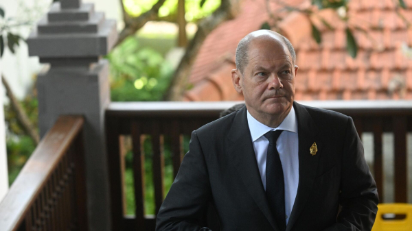 © Sputnik / Pavel Bednyakov / Перейти в фотобанкФедеральный канцлер Германии Олаф Шольц покидает экстренное совещание после инцидента в Польше на Бали